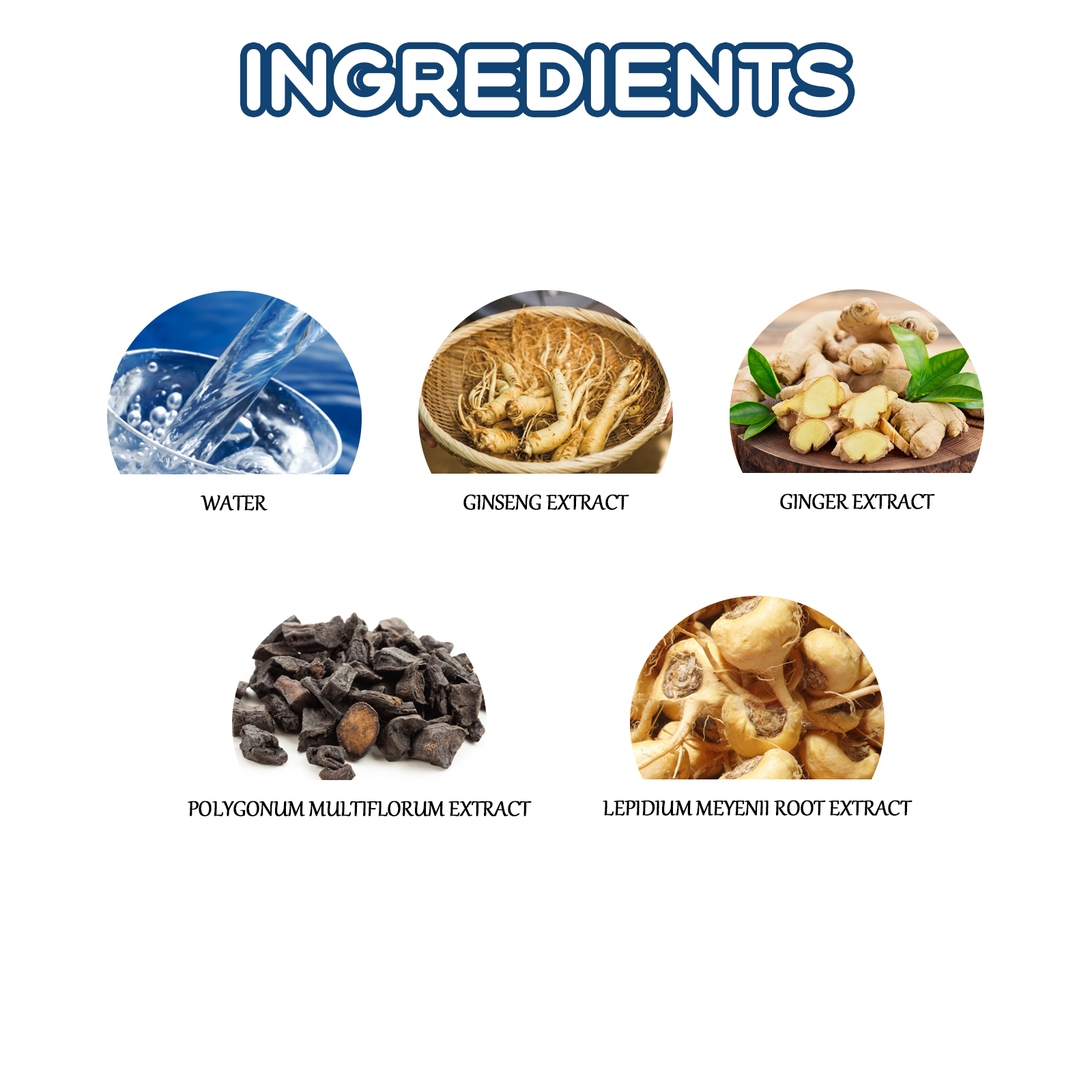 Our hair spray contains ginseng extract, ginger extract and Polygonum multiflorum extract. It can help strengthen hair and is designed to restore, strengthen and protect hair; Strengthens fragile hair while cleansing the scalp; Make your hair thicker and keep your scalp healthy. The way to use it is simple: 1. Wash your hair first. 2. Spray 3 cm from your hair. 3. Gently massage until fully absorbed. Hair care spray is rich in fresh organic plant extracts to keep scalp clean and hair healthy. Remove scalp impurities, nourish hair roots, and help healthy hair growth.